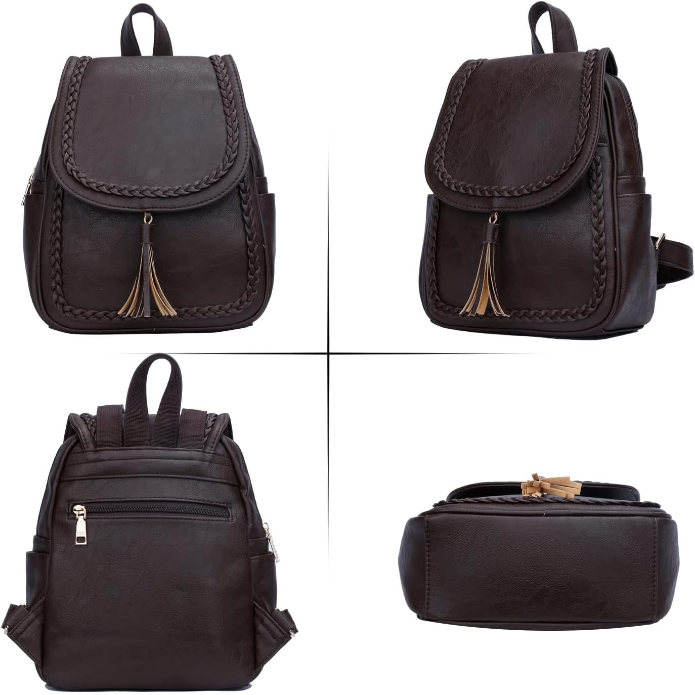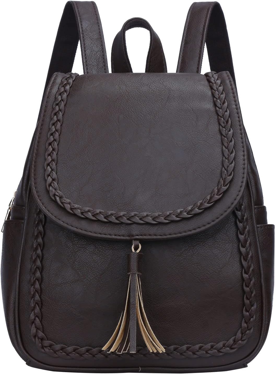 Fashion Small Synthetic Leather Backpack Purse For Women and Ladies with Tassel (Coffee)